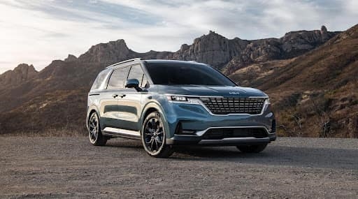 This attractive minivan has class-leading space for both passengers and cargo. Behind the third row, you’ll find 40.3 cubic feet for storage, increasing to 86.9 cubes with the third row folded, and 145.1 cubes with the second row folded down as well. The back-row seats fold flat, while the middle-row bench seat splits, slides, and folds independently. If you opt for the removable second-row captain’s chairs, you’ll enjoy even more versatility. There’s plenty of room for everyone and their stuff in the Kia Carnival.